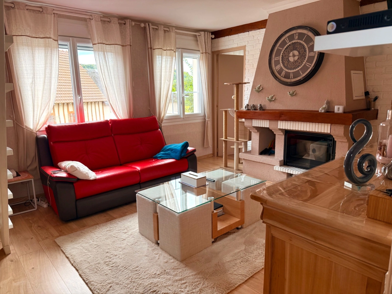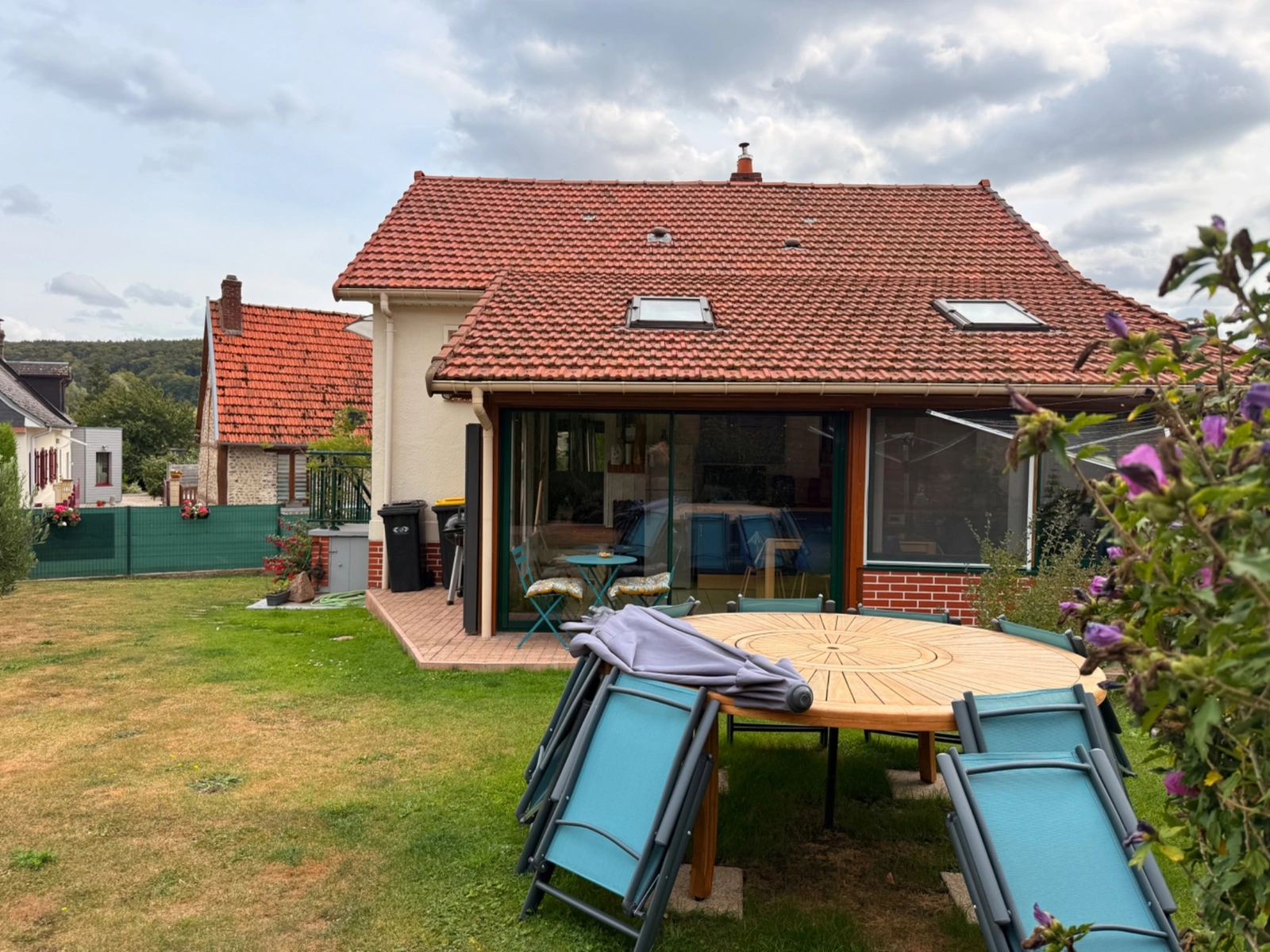 Martin-Eglise, centre bourg avec commerces et écoles à pied! Maison de plain-pied dans un état irréprochable comprenant au RDC entrée, séjour avec insert à granules, grande cuisine équipée avec son coin repas donnant accès sur son jardin de 327m² sans vis-à-vis, deux chambres avec des placards aménagés, une salle d'eau et wc indépendant.Dans les combles une pièce a été aménagée et peut faire office de troisième chambre.Un garage une voiture.Terrasse plein sud avec store banne.Soyez réactif!!Taxe foncière: 500€. Les honoraires sont à la charge du vendeur.